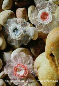 1 ряд: в 5 вп предыдущего ряда 1 столбик с накидом, пропустить одну вп цепочки, 1 столбик с накидом, 1 вп, 1ст с накидом в эту же петлю предыдущего ряда. Продолжить до конца воздушной цепочки.