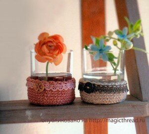 Быстро и легко! Таким образом мы можем обвязать и маленькие вазочки и стаканчики для сока.