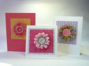 Мне очень понравилась идея оформления открытки необычным цветком. В авторском варианте использована бахрома из ниток, но это может быть и помпон (из небольшого количества пряжи). Далее подробнее с фото.