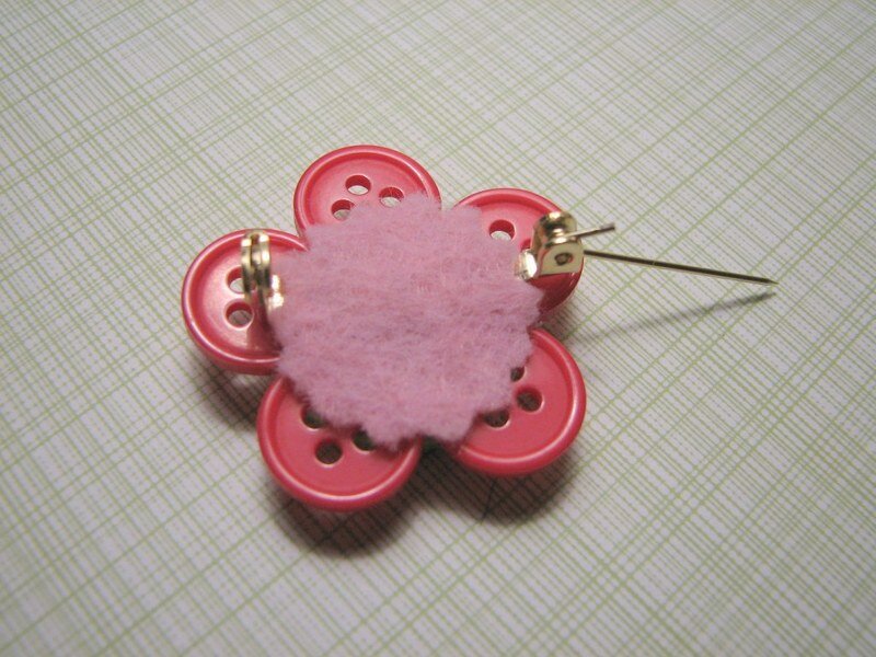 Для ее изготовления нам понадобится 5-6 маленьких пуговок, большая центральная пуговица, пуговка в форме цветочка (для украшения сердцевины броши), булавочка и клей. Автор фото мастер класса — Rebeka Lambert.