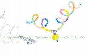 2 шаг: нанизываем бусины. Последовательность цветов сверяйте с основным фото.