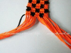 Сначала разделяем оставшиеся хвостики нитей на 2 части