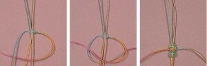 Из нитей основы сформируем петлю и начинаем плести квадратный плоский узел.