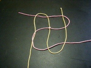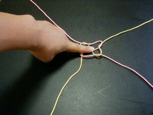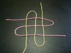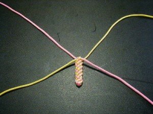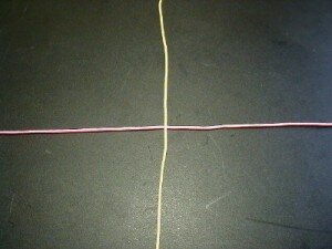 Накладываем одну нить на другую перпендикулярно друг другу.