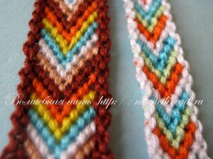 Мы уже обращались к теме плетения фенечки на уголок или фенечки -стрелочки. Посмотреть можно ЗДЕСЬ. Сегодня предлагаю попробовать сплести такую фенечку с кантиком. Выбор за Вами: это будет кантик из 2-х или 1-й нити.Фото: