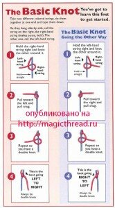 Необходимую длину нити увеличиваем на 2. То есть, если нужно 1 м, то отрезаем нить длиною 2м. Соединяем эти длинные нити вместе, складываем пополам и закрепляем узелком.