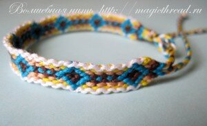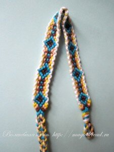 Такое начало делает любую фенечку более аккуратной и симпатичной. Конечно, я выбрала для примера узкую фенечку, чтобы видео было покороче. Но чем шире фенечка, тем выигрышнее смотрится такое начало.