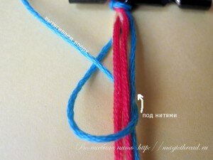 Хвостик нити заводим под основные и вытягиваем в полученную петлю.