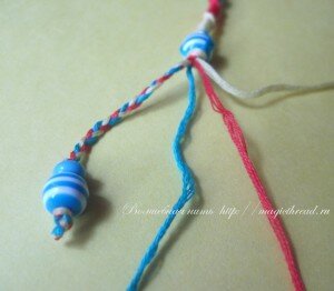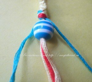Закончив, закрепите плетение обычным узелком. Украсьте бусинкой.