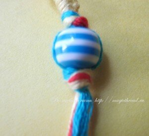 Меняем нить. Выбираем нить другого цвета. Старайтесь сделать 1 узелок этого цвета как можно ближе к последнему.