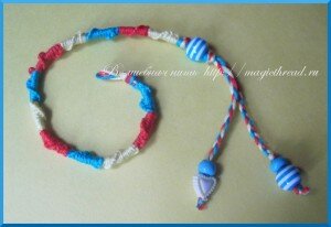 Постоянно меняя цвета нити продолжайте плетение узелков до необходимой Вам длины.