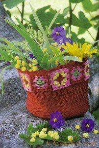 Сегодня предлагаю для обсуждения новую тему — оформление цветочного горшка. Обязательное условие — использование пряжи, нити или шнура.