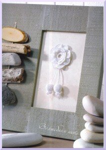 Вязание небольшого цветочного мотива и двух помпончиков не займут у Вас много времени. Зато созданная из них композиция в рамочке несомненно украсит Ваш интерьер.