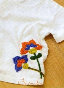 Всего несколько вязаных цветочков, а Ваши летние топики или маечки изменят свой вид. Теперь они будут выглядеть свежо и нарядно.