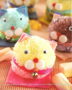 Основа игрушки — двухцветный помпон. Схему изготовления помпона можно посмотреть ЗДЕСЬ.