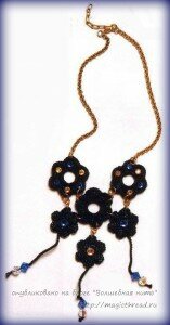 Основа колье — вязаные цветы, украшенные бусинами. Вам необходимо связать 3 крупных и 3 мелких цветка.