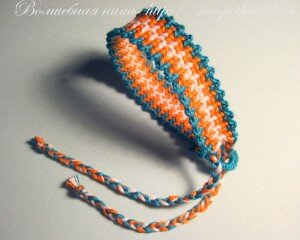 Этот вариант (постепенное расширение или сужение рядов) лучше всего подойдет для узкой фенечки прямого плетения.