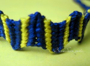 Эта фенечка для тех, кто освоил плетение правых и левых петельных узлов. Я надеюсь, что Вы уже сплели фенечку на уголок и фенечку с узором шевроны?!