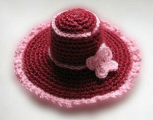 Для вязания этой чудесной панамки нам понадобится 2 вида пряжи и шелковая ленточка (около 60гр акриловой пряжи розового цвета и 30г пряжи белого цвета).