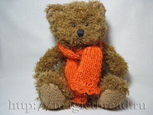 Дети не любят вязать просто образцы. К нам в гости на занятие приходит Мишка и мы вяжем для него шарфик. Как правило, мы успеваем связать шарфик за 1 занятие.