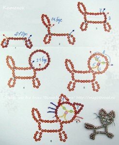 Проблема возникает только с усиками. Посмотрите внимательно на схему — проволочка вытягивается, закручивается, заходит в следующую бусинку, опять вытягивается...