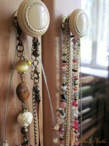 Конечно, большинство из нас хранит украшения в шкатулках. Вот и я выпросила на день рождения «ну очень большую» шкатулку для бижутерии. Подарили. А теперь смотрю на свое «богатство» и хочется его как то развесить, чтобы легче было подбирать, чтобы все на виду. Пока решила самый простой вариант использовать: на ручках книжного шкафа, но останавливаться на нем я не намерена. Подбираю разные идеи.
