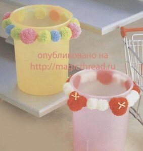 Готовимся к новому учебному году. Стаканчики для карандашей и ручек можно украсить помпончиками. Как сделать такой миниатюрный помпон я уже рассказывала здесь.