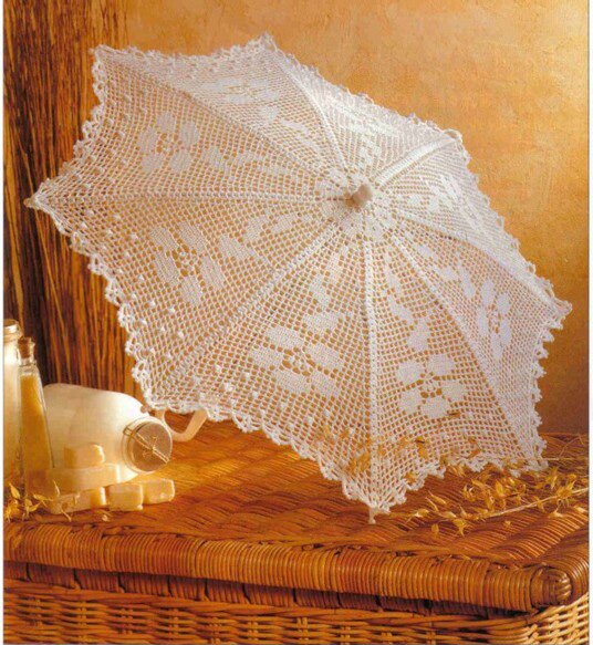 Предлагаю Вашему вниманию несколько вариантов вязаных зонтиков. Один спасет Вас от солнца, другой послужит симпатичным сувениром,