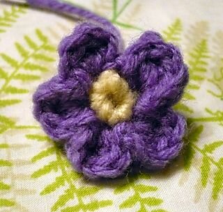 Оставьте длинные хвостики нити в конце и в начале вязания, чтобы ими можно было прикрепить цветок.