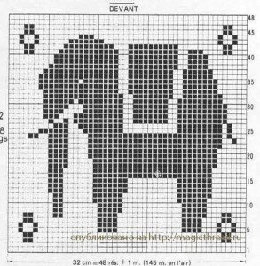 Филейный узор вяжется очень быстро. Это может быть очаровательная девочка с косичками или любимое животное. Каждым из этих узоров можно внести изюминку в детскую комнату: салфетка на стол, занавесочка или веселая подушка. Выбор за Вами.