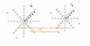 Здесь так же необходимо связать определенное количество маленьких и больших бусин. Цвет имеет значение! Используйте остатки пряжи.