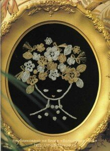 Предлагаю продолжить тему создания композиции из вязаных элементов. Идея очень интересная — портрет девочки из цветов. Далее только схемы.