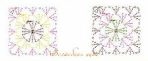 вязание крючком июля 31, 2012С таким же успехом оно может послужить футляром для цветочного горшка или просто мешочком для мелочей. Вяжется крючком. Начинаем вязание с маленьких квадратных мотивов: