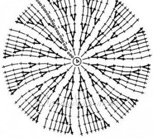 Вяжем круг столбиками с 1 накидом в соответствии со схемой (ширину круга определяете Вы)