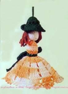 Эту очаровательную куколку можно связать за один вечер. Для работы нам пригодятся нитки «Ирис» (можно использовать остатки). Вяжется крючком.