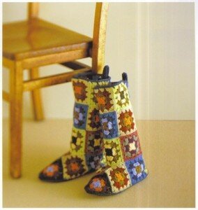 Согласна, плед — это долго. А холодными вечерами нас смогут согреть и просто вязаные из квадратов тапочки.