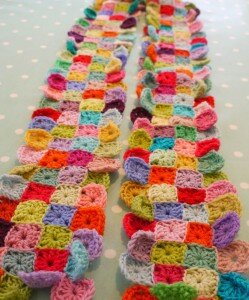 Сегодня мы посмотрим, как можно использовать квадратный мотив, связанный крючком. Мы уже знаем, что выполняется он довольно быстро. А если собрать вместе несколько связанных квадратов? Да, получится яркий шарф. А может быть Вам захочется новую