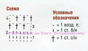 Для колье связать цепочку из 7 воздушных петель и 1 вп для подъема. Далее вязать по схеме.
