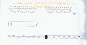 Схема вязания ожерелья. На нижнем ряду смотрите порядок расположения стеклянных украшений.