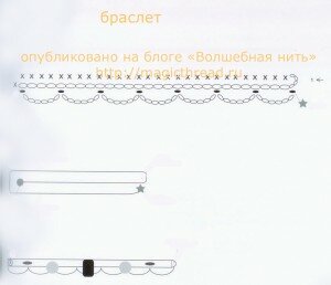 Схема вязания браслета такая же, как и у ожерелья. Изменяется только количество воздушных петель цепочки. Меряйте по своей руке.