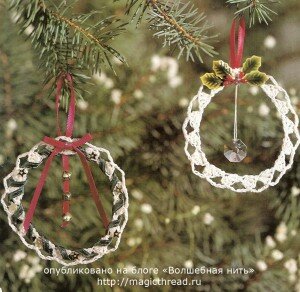Предлагаю сегодня Вашему вниманию один из самых легких вариантов вязания и оформления рождественского веночка. Можно украсить листиками и бусинкой, можно использовать атласные ленточки. Далее только схема. Схема: