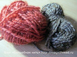 К сожалению, моя пряжа закончилась раньше. Мне не хватило ее на последние ряды и я приняла решение соединить 2 части обвязки прямо на вешалке нитью другого цвета.