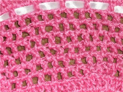 Для вязания этой чудесной панамки нам понадобится 2 вида пряжи и шелковая ленточка (около 60гр акриловой пряжи розового цвета и 30г пряжи белого цвета).
