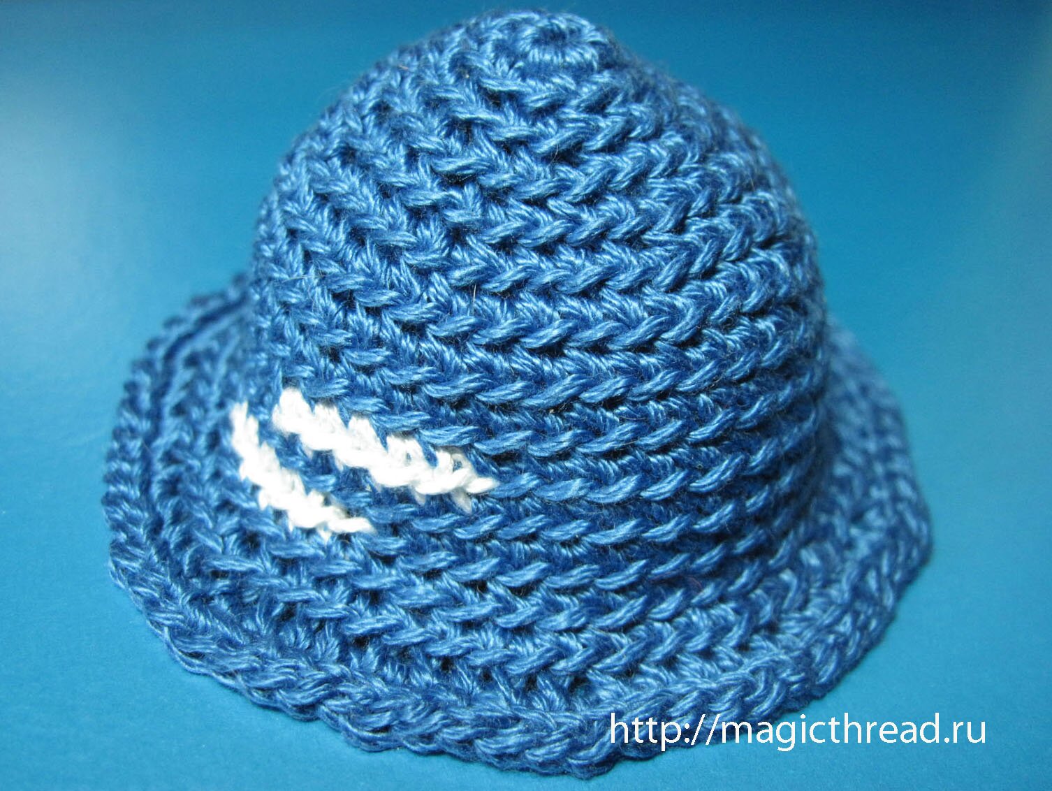 Эта панамка связана специально для куклы. А вот предложенная далее схема и описание работы имеют другой размер. Они рассчитаны на возраст — 1 годик.