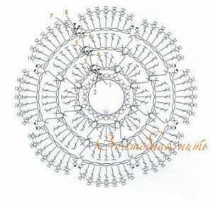 Хорошо смотрится из белых х/б ниток. Вяжется крючком. Далее только схемы. Схема вязания цветочного мотива: