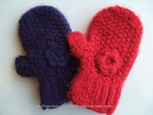 А здесь цветок связан из пряжи под цвет рукавичек.