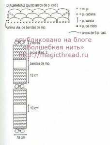 Сейчас, когда становится все холоднее, особенно вспоминается лето, цветы, яркие краски. Предлагаю связать веселый шарфик с летним настроением.Общая схема вязания. Мы видим чередование полос: полотно, связанное столбиками с накидом и полотно — ажурная сеточка. Выбор цвета за Вами!