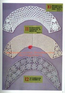 Схема вязания дана только для 10 и 11 вариантов. Здесь даны схемы декоративных элементов, а филейное вязание можно подсмотреть у следующего воротничка.