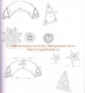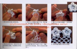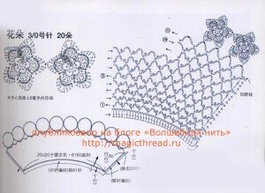 На верхнем рисунке, к сожалению, показаны только схемы декоративных элементов. Но филейную вязку основы можно подсмотреть у следующего воротничка.
