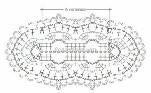 Обратите внимание: схема браслета уменьшена. Средняя часть на схеме предполагает только 2 бусины, а нам необходимо будет провязать 6 мотивов. Бусины нанизываются на цепочку из воздушных петель (1 ряд).